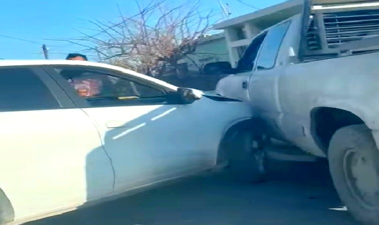 Reynosa, Tamaulipas.-Accidente vial se registró en una concurrida calle de un sector popular, donde dos unidades se impactarán, y que dejarán solo daños materiales, así como caos vehicular.