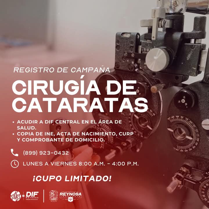 El Sistema DIF Reynosa qué preside Carlos Luis Peña Garza invita a los ciudadanos a registrarse en la campaña de Cirugía de Cataratas.