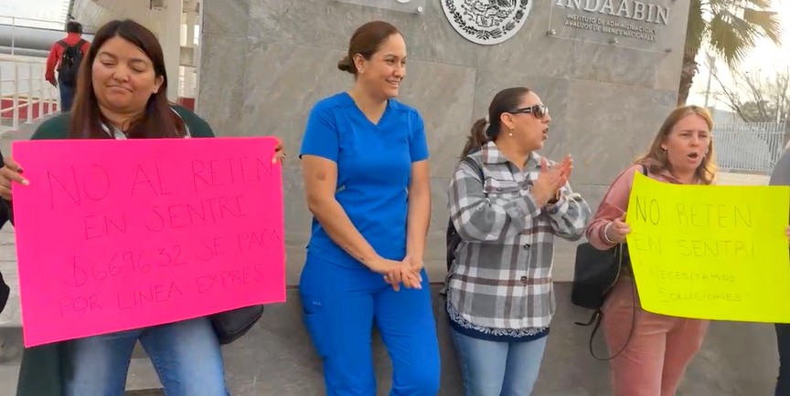 Señoras realizar protesta pacífica exigiendo quiten retenes al gobierno Federal de Claudia Sheinbaum