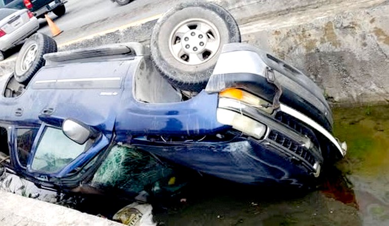 Cae unidad en dren de aguas negras dejando daños materiales (5)