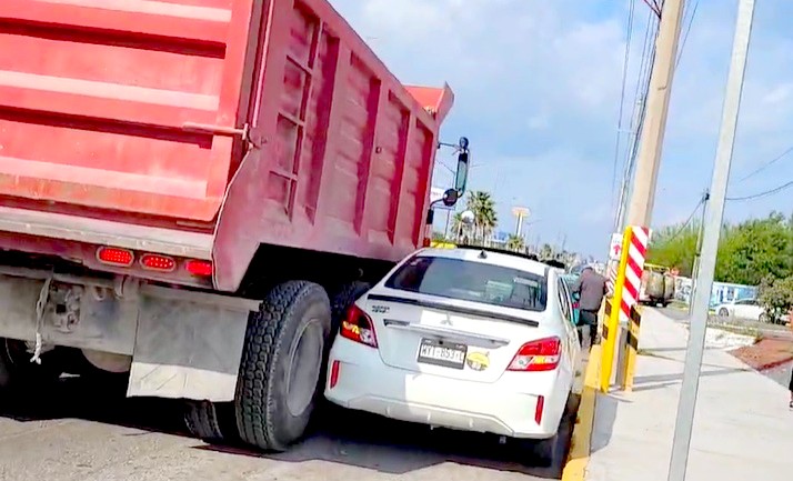 Reynosa, Tamaulipas.-Accidente vial se registro en una concurrida carretera hacia el norte de la ciudad, donde el saldo final fuera de solo daños materiales, y caos vehicular.