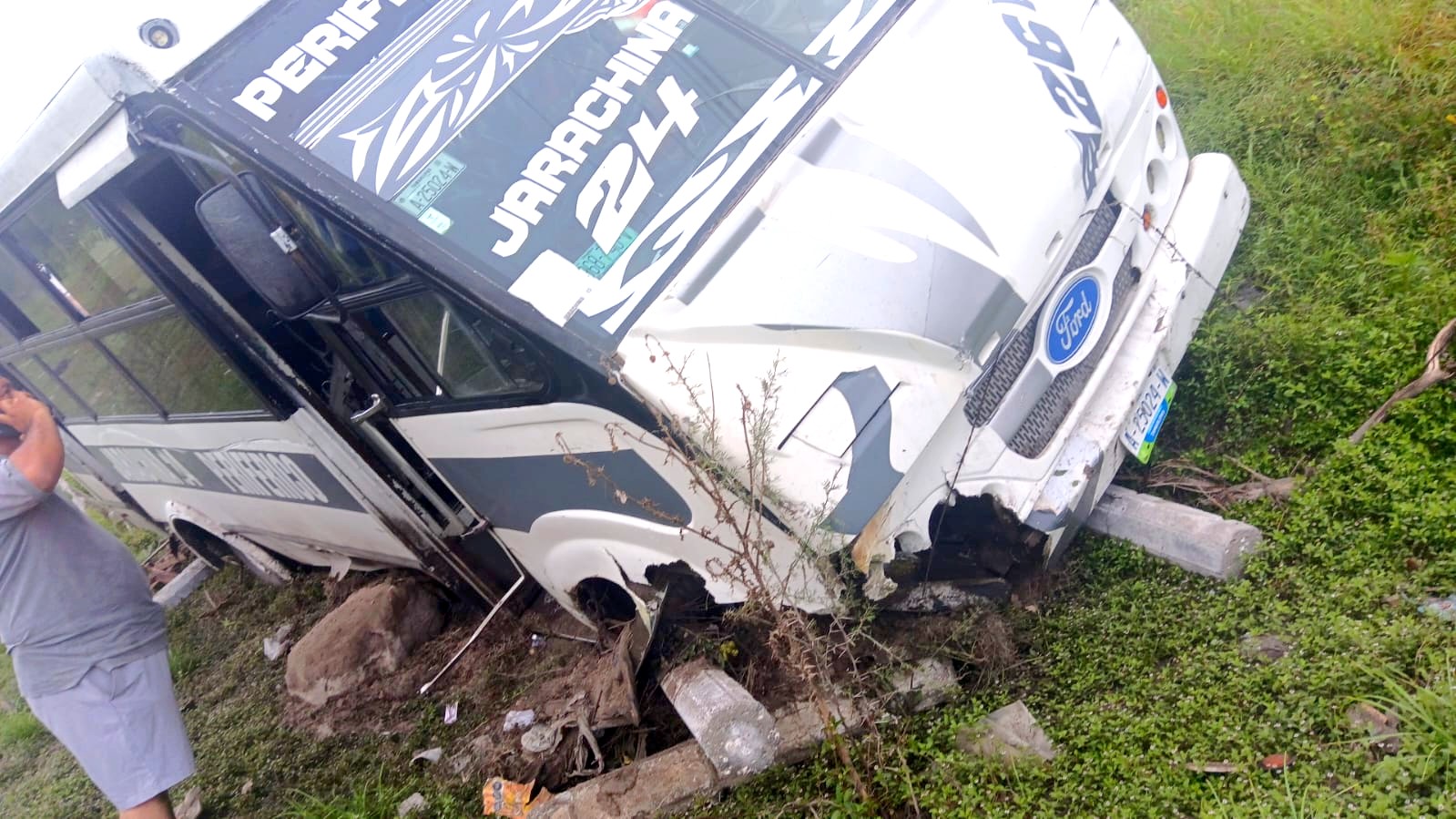 Así mismo otro accidente vial se registró sobre el Libramiento a Monterrey, a un costado de la colonia Loma Real de Jarachina Sur, donde una unidad del transporte público de la Ruta 24 Jarachina, se impactara al parecer con una barda, y dejará varios pasajeros lesionados, así como cuantiosos daños materiales, y caos vial.