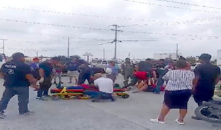 Los hechos se registraron en la colonia Fraccionamiento San Jorge, donde una camioneta impactara a una motocicleta resultando lesionadas dos personas adultas, y un menor siendo auxiliados por una unidad médica de Protección Civil, quienes trasladaran a los lesionados a un hospital para su atención.