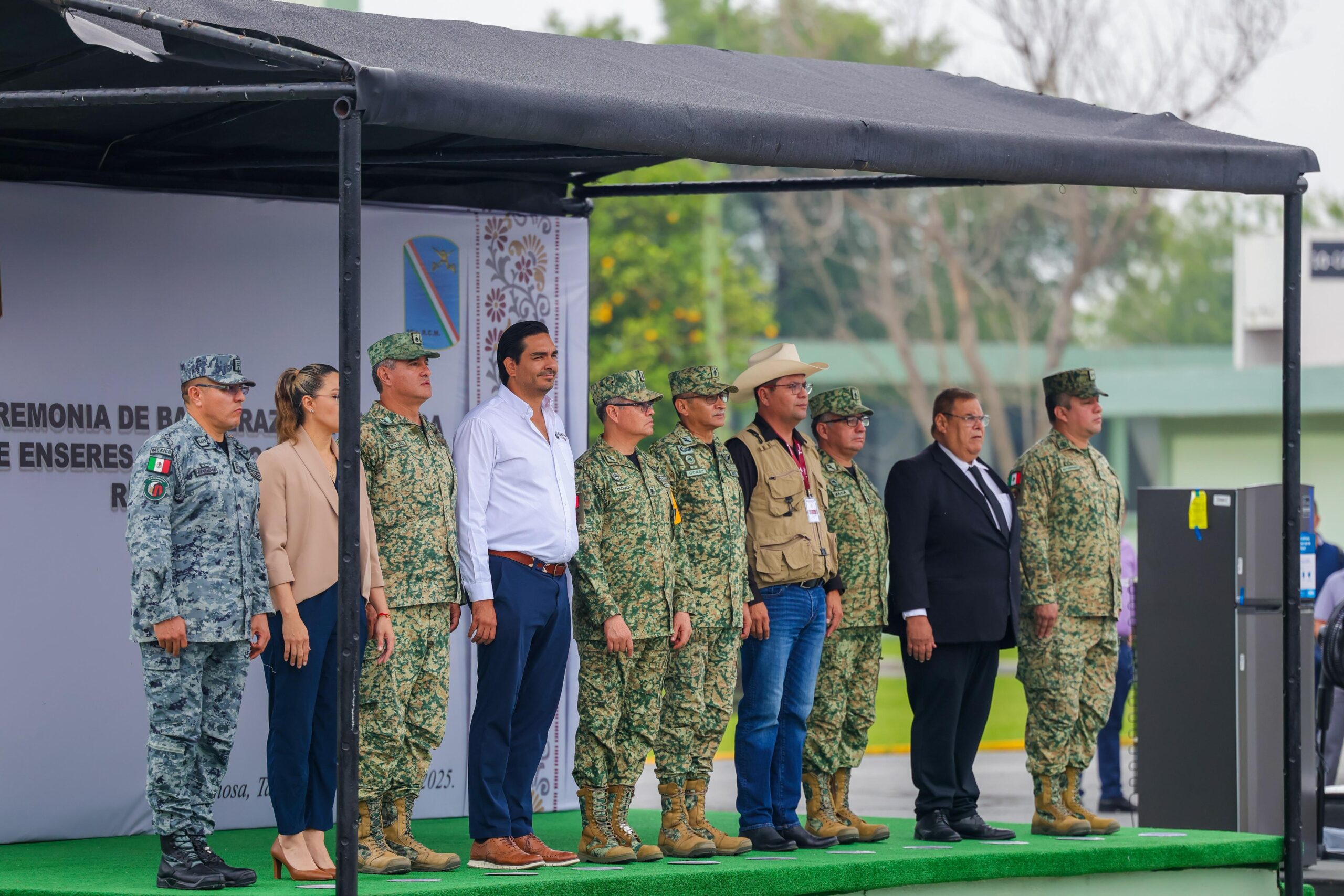 El Alcalde Carlos Peña Ortiz, participó en la «Ceremonia de Banderazo de Entrega de Enseres Domésticos Reynosa-Río Bravo 2025», con el General de División DEM, Juan José Gómez Ruiz, Comandante de la IV Región Militar; César Nacianceno López, Director de Operaciones Especiales Matamoros-Reynosa de la Secretaría General de Gobierno de Tamaulipas en representación del Gobernador Constitucional del Estado, Doctor Américo Villarreal Anaya.