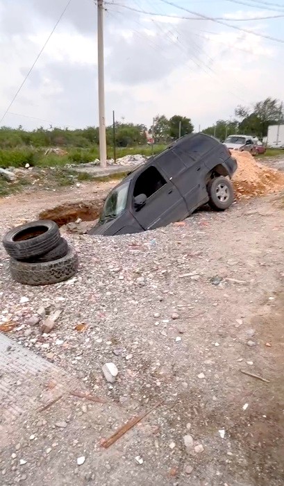 Reynosa, Tamaulipas.-Aparatoso accidente vial se registró en una apartada colonia popular, donde una unidad cayera en un socavón, y que dejara cuantiosos daños materiales.