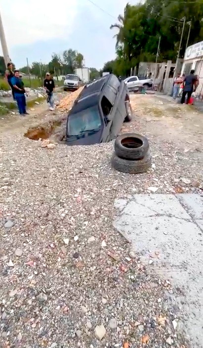 Cae unidad en enorme socavón y deja daños materiales (3)
