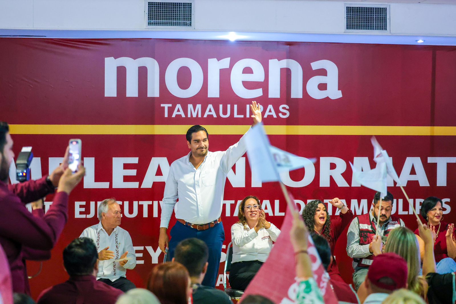 «Pertenecemos al mejor partido de México», explicó en presencia de Peña Ortiz el excandidato que en el 2024 dejó la mejor marca histórica en una elección local en Tamaulipas, representando a MORENA para la alcaldía.
