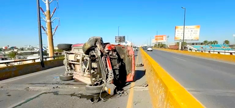 Reynosa, Tamaulipas.-Aparatoso accidente vial se registro en un concurrido puente vehicular, donde el saldo final fue de una persona lesionada, daños materiales, y caos vehicular.