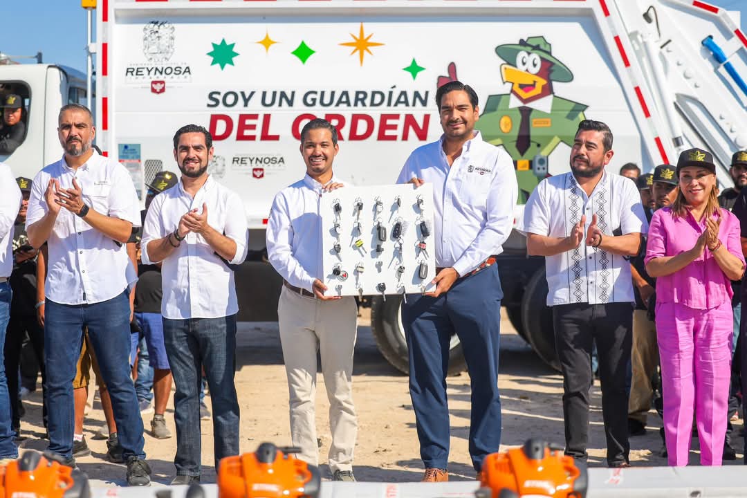 Partiparon en este memorable inicio del programa «Reynosa Imparable», las Regidoras Silvia Carmina Rodríguez Treviño y Juana Alicia Sánchez Jiménez, integrantes de la Comisión de Servicios Públicos Primarios; Ernesto Gómez De la Peña, Contralor del Municipio; funcionarios municipales, y los invitados invitados especiales, trabajadores de Servicios Públicos.