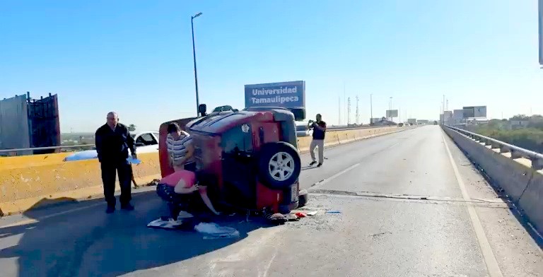 Aparatoso accidente en puente vehicular deja daños y caos vial (1)