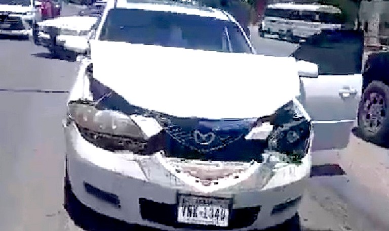 Chocan en la “Rotonda de la Muerte” dejando daños materiales y caos vial (1)
