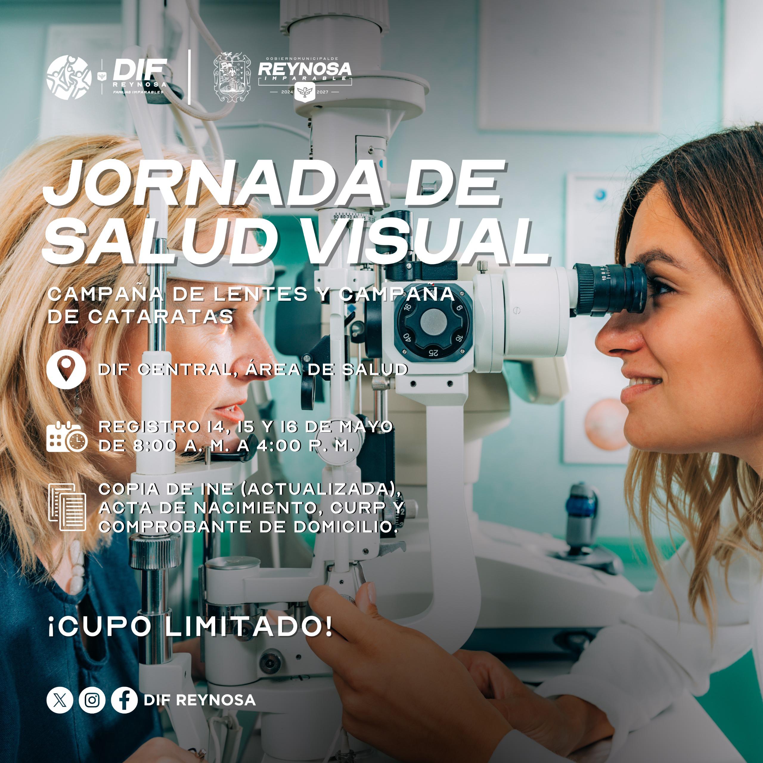 Con el objetivo de mejorar la salud visual de las familias, el Sistema DIF-Reynosa que preside Carlos Luis Peña Garza, realizará una Jornada de Salud Visual, enfocada a beneficiar en forma gratuita a los ciudadanos con entrega de lentes y cirugías de cataratas.