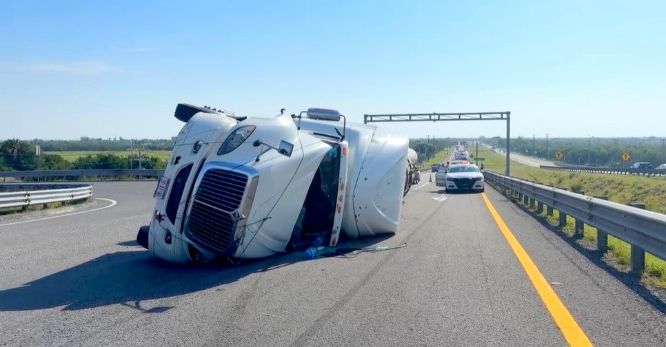 Los hechos se registraron en la nueva autopista de Matamoros a Reynosa, a un costado del ejido Palo Blanco, donde un tráiler tipo pipa se volcara, cuando al parecer subía el retorno llamado “caracol”, donde se le venció la unidad y volcó.