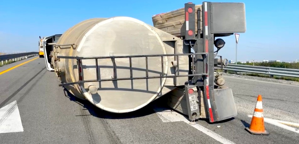 Vuelca pipa en la autopista Matamoros-Reynosa dejando daños materiales