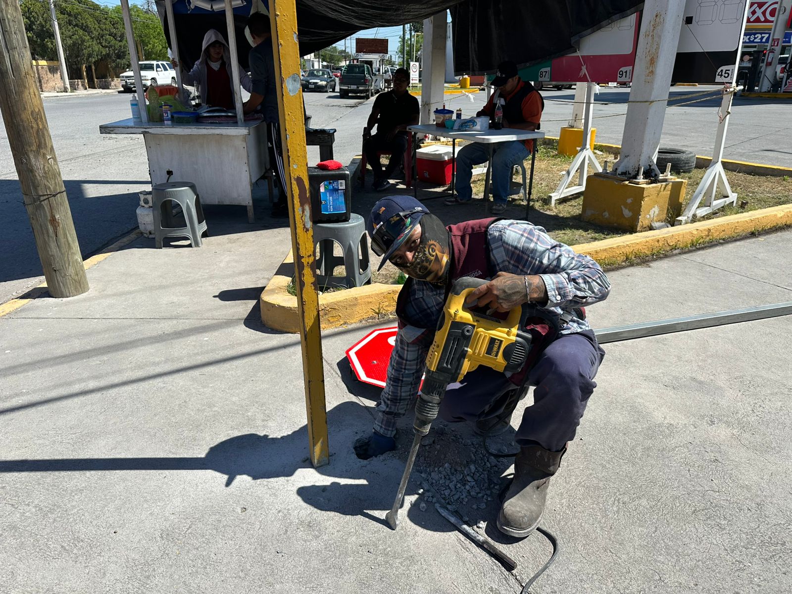 Entre las labores más recientes, se realizó la instalación de señalamientos de ALTO en la calle 2 de Febrero con Francisco I. Madero, en la colonia La Presa, a un costado de la Escuela Secundaria Técnica Industrial, ETI 44.