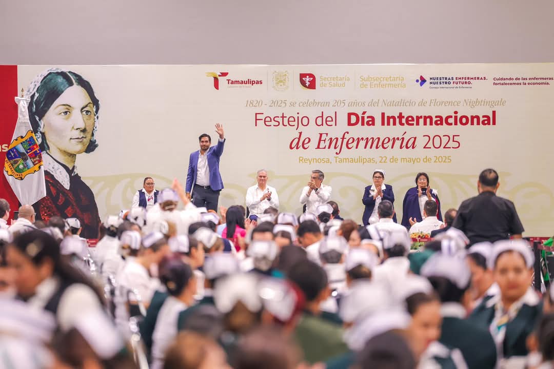 Un festejo por el Día Internacional de Enfermería 2025, fue ofrecido a Enfermeras y Enfermeros en Reynosa, por el Gobernador Constitucional de Tamaulipas, Doctor Américo Villarreal Anaya, donde fue acompañado por el Presidente Municipal, Carlos Peña Ortiz y por el Secretario de Salud de la entidad, Vicente Joel Hernández Navarro.