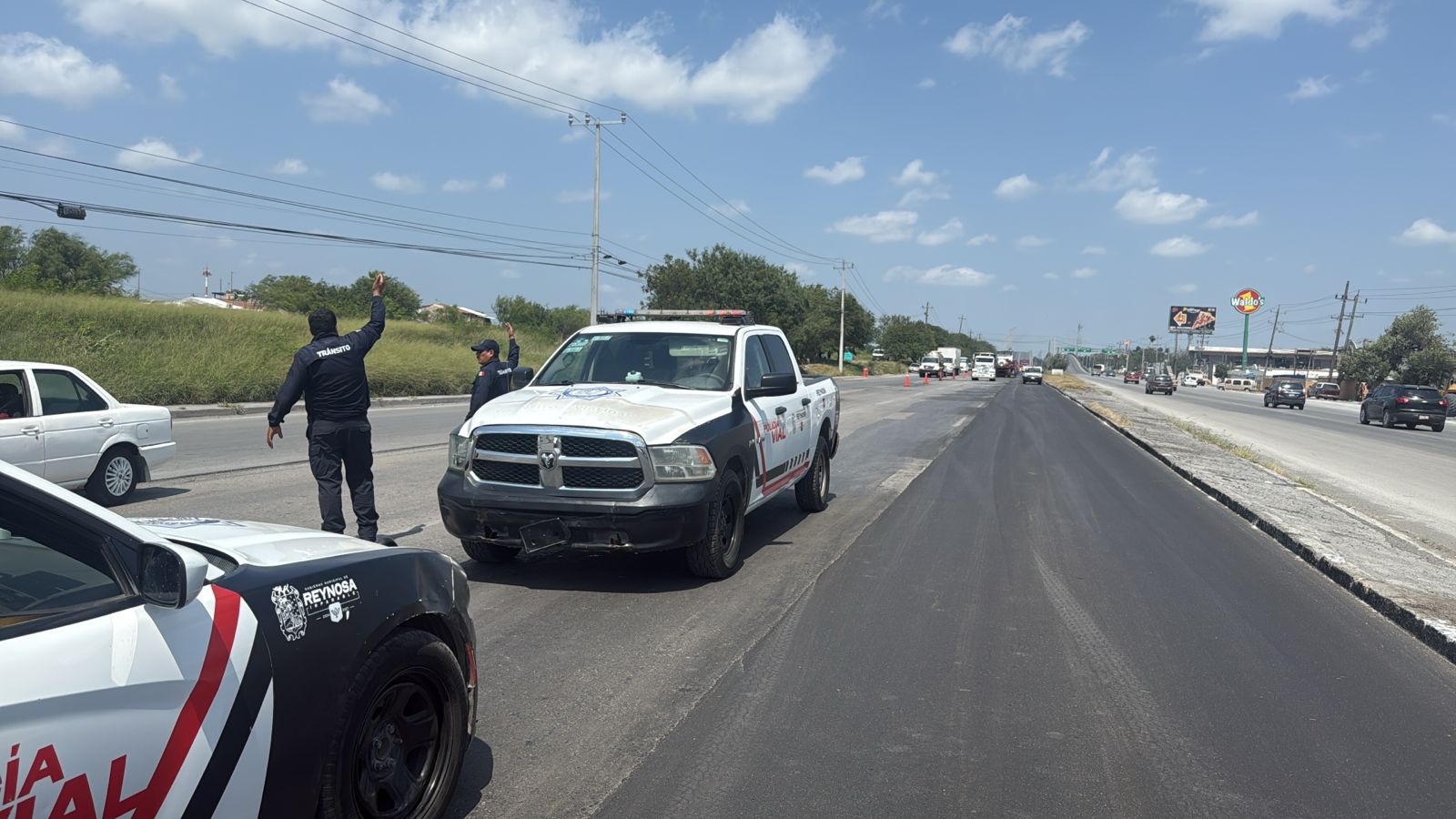 El Gobierno Municipal informa a los automovilistas, el cierre temporal del tráfico vehicular en el puente elevado de la carretera Reynosa-Río Bravo, frente a la sede de la Octava Zona Militar, hoy sábado 24 de mayo para abrirlo a la circulación a las 6:00 de la tarde.