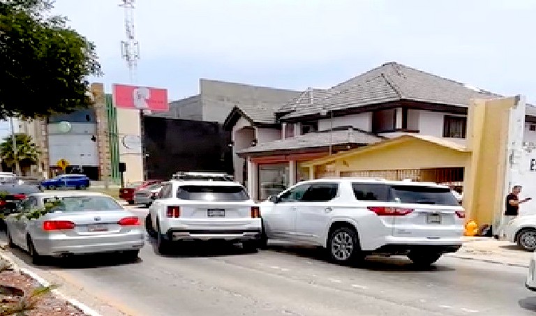 Reynosa, Tamaulipas.-Accidente vial se registro en una concurrida colonia residencial, donde el saldo final fuera de solo daños materiales, y obstrucción vehicular.