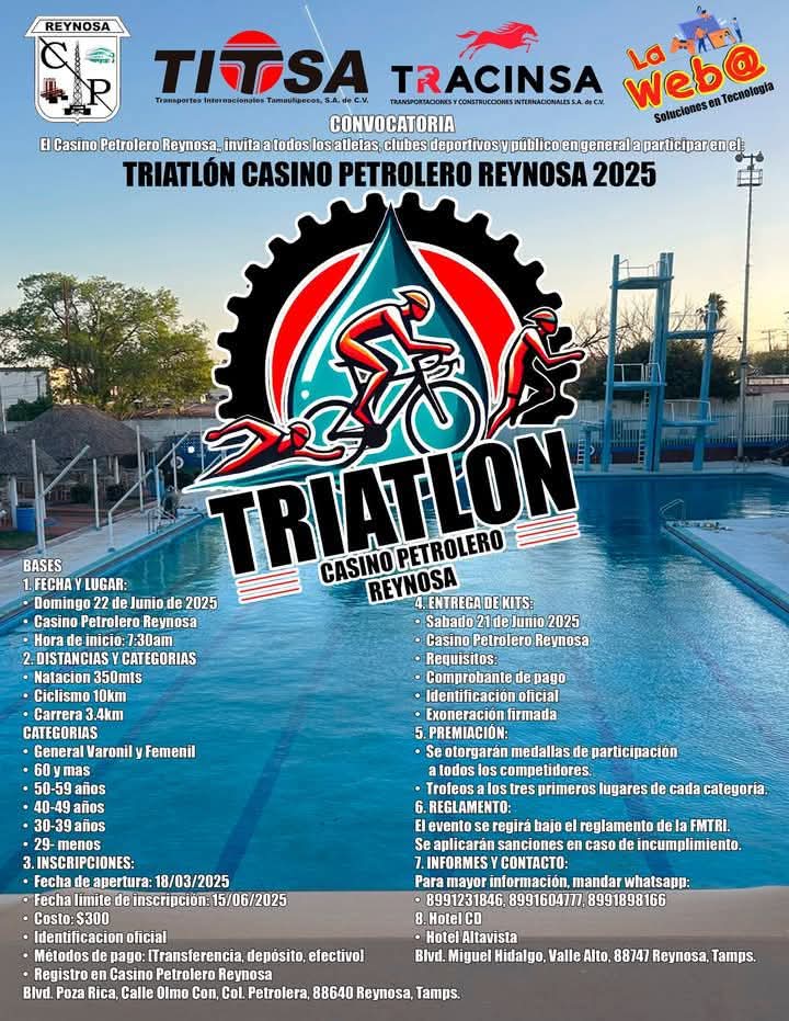 El Alcalde Carlos Peña Ortiz continúa fomentando el deporte y la participación ciudadana con el anuncio del Triatlón Casino Petrolero Reynosa 2025, que se llevará a cabo el próximo domingo 22 de junio.