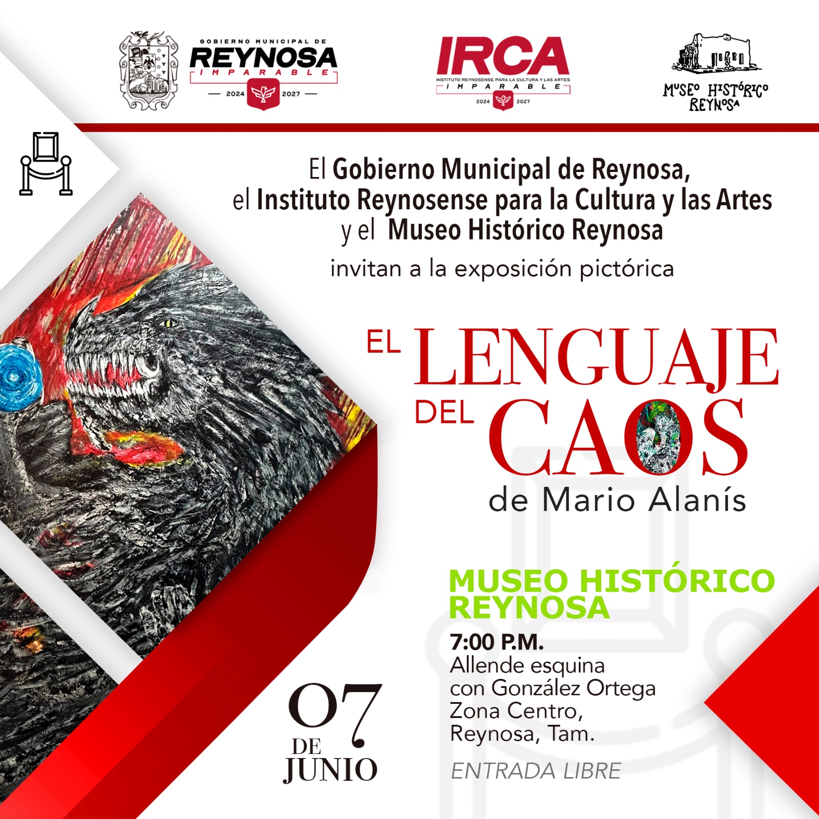 El Gobierno de Reynosa, que preside el Alcalde Carlos Peña Ortiz, invita a la inauguración de la exposición pictórica «El lenguaje del caos», el próximo 7 de junio a las 19:00 horas en el Museo Histórico Reynosa.