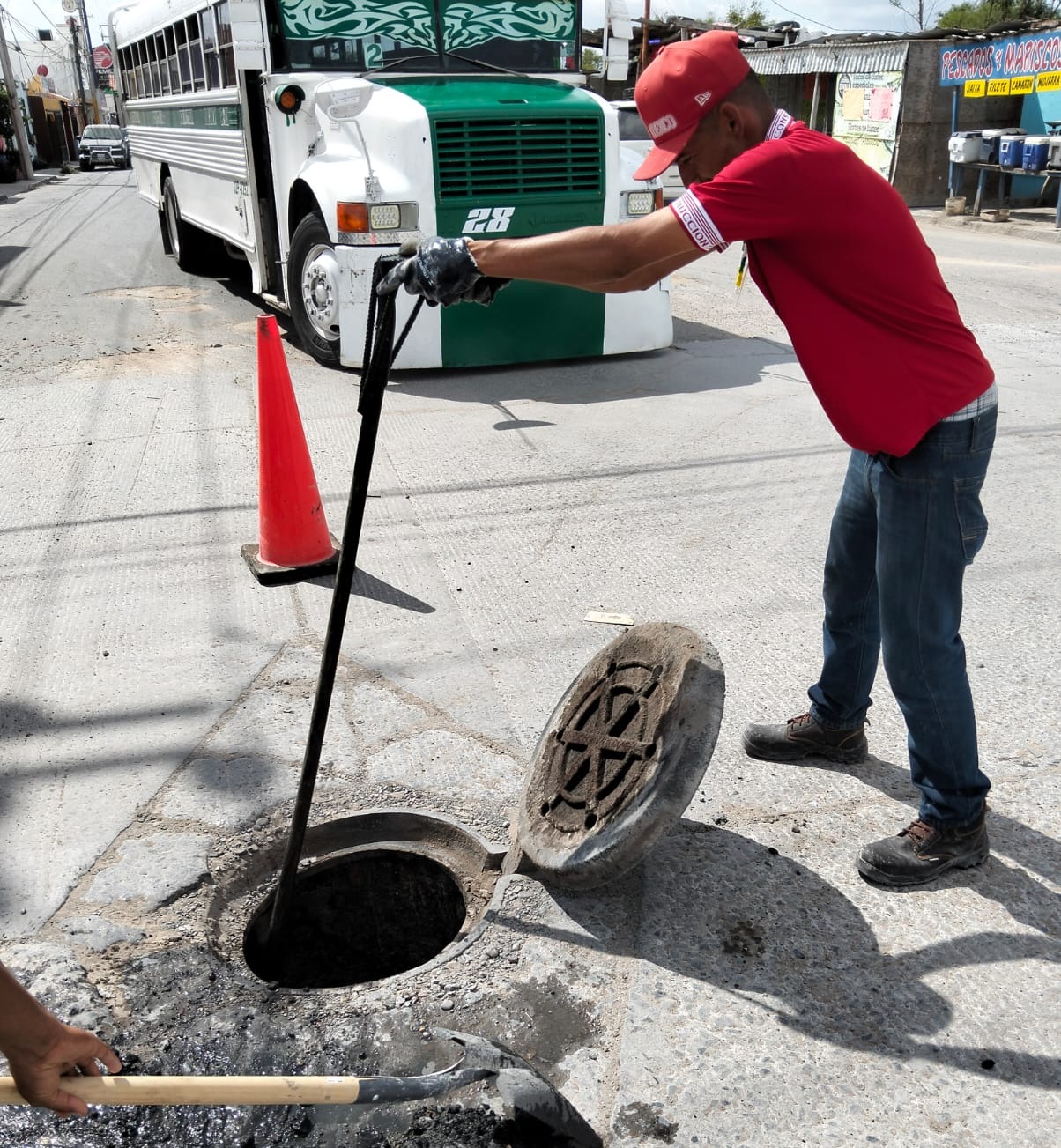 Por instrucciones del Presidente Municipal, Carlos Peña Ortiz, personal de la Comisión Municipal de Agua Potable y Alcantarillado de Reynosa, realizó labores de limpieza y sondeo en los colectores sanitarios de la colonia Hacienda Las Fuentes, con el objetivo de reducir los niveles en la línea sanitaria y eliminar los encharcamientos que afectan a los vecinos del sector.