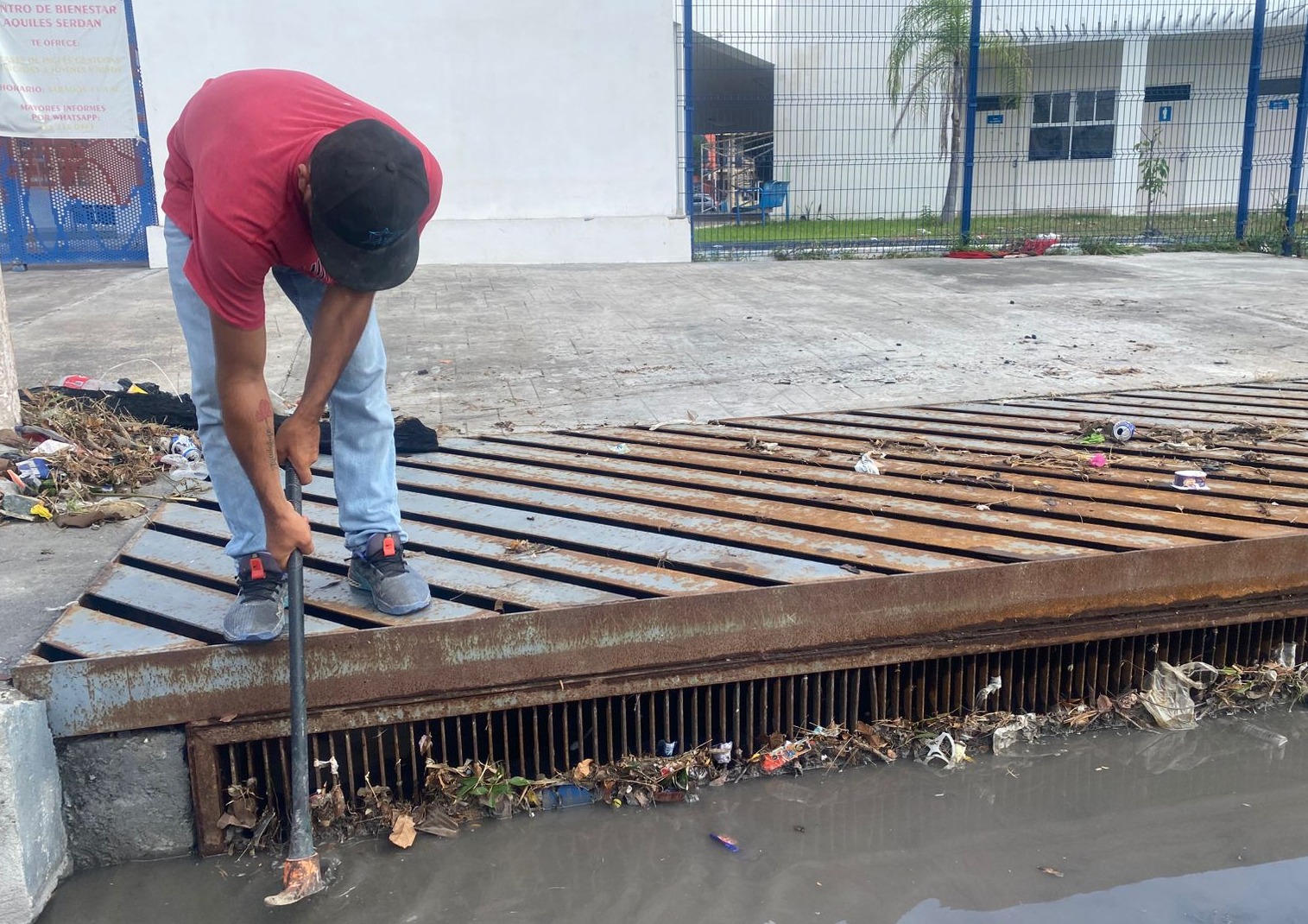 Durante estas labores, el personal del organismo extrajo basura, maleza y otros desechos que obstaculizaban el flujo del agua pluvial, lo que permite un mejor desalojo del agua y ayuda a prevenir afectaciones en calles y colonias.