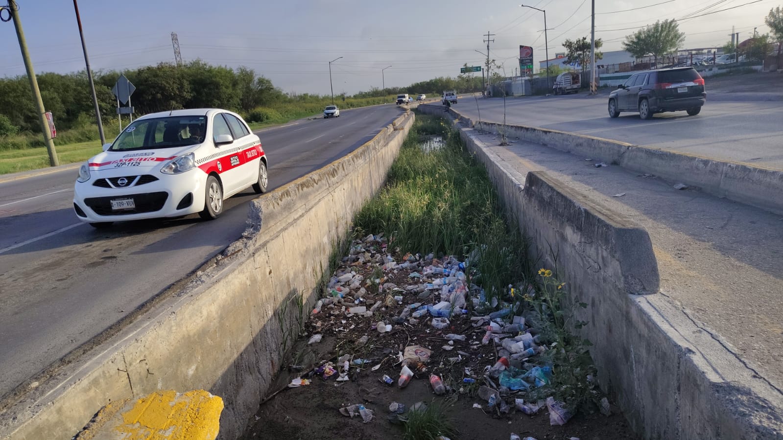 La Secretaría de Servicios Públicos recibió indicaciones del Presidente Municipal Carlos Peña Ortiz para realizar el desazolve y limpieza del dren adyacente al bulevar Oriente en la colonia La Escondida, donde fueron colocados conos de tráfico para asegurar el área.