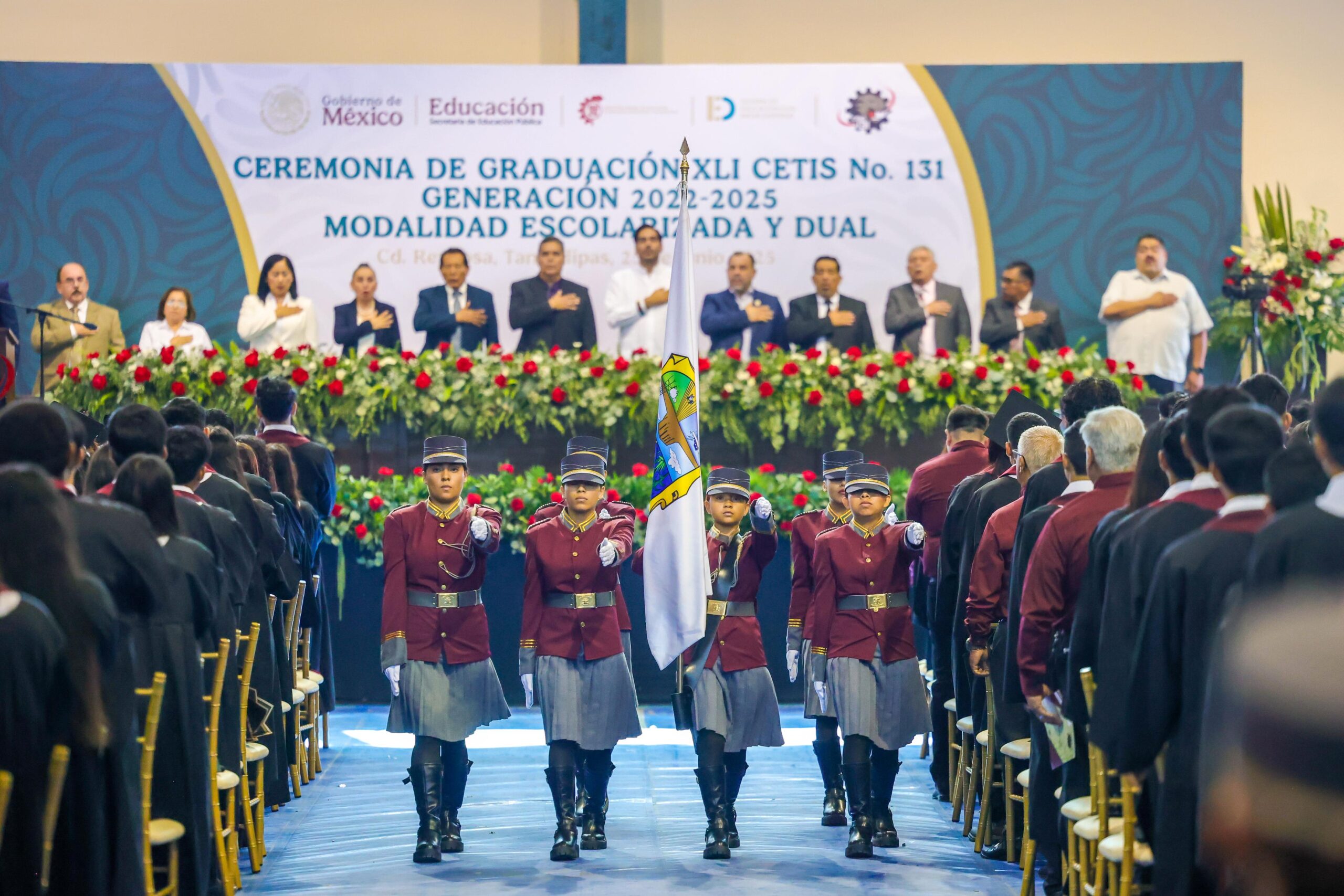 El Presidente Municipal Carlos Peña Ortiz fue invitado a la XLI Graduación de la Generación 2022-2025 del CETIS Número 131, que dirige Enrique Cuevas Nolasco, y donde también asistió el Responsable de la Oficina Estatal de la DGETI en Tamaulipas, Olegario Muñiz Cura.